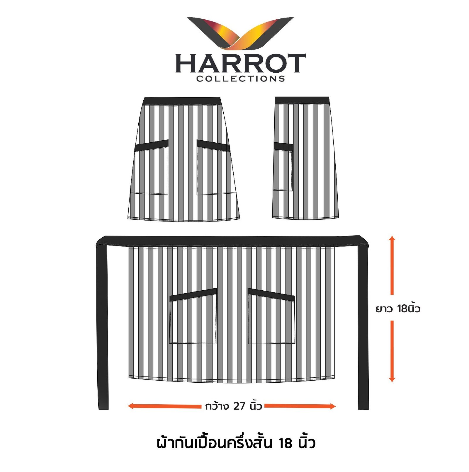 - ขนาดผ้ากันเปื้อน : กว้าง 27 นิ้ว x ยาว 21 นิ้ว