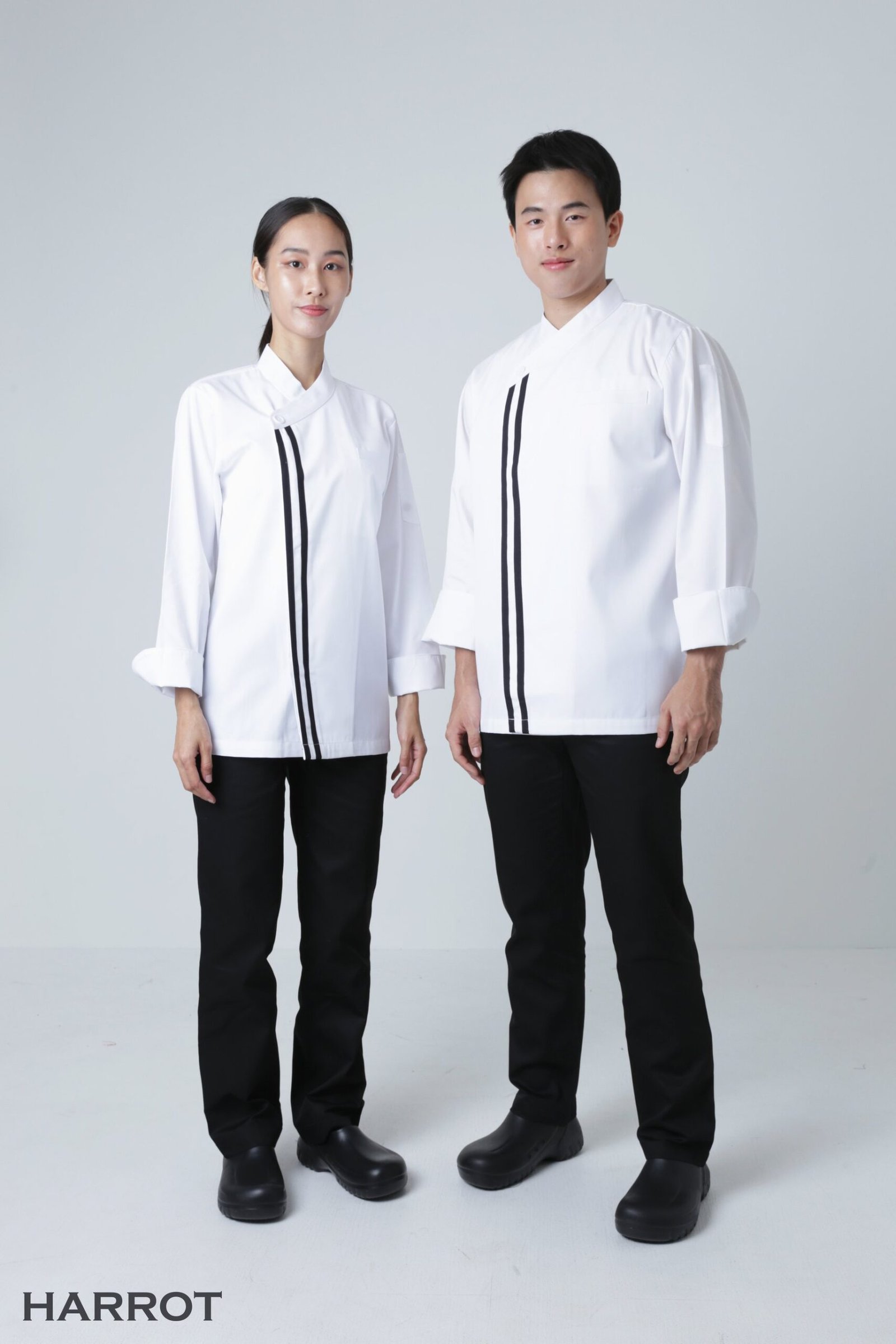 เสื้อเชฟรุ่นนี้สะท้อนถึงความพิถีพิถันในงานตัดเย็บ ที่ไม่เพียงตอบโจทย์การใช้งานจริง แต่ยังช่วยเสริมภาพลักษณ์ให้ผู้สวมใส่ดูเป็นมืออาชีพ ด้วยคอป้ายแขนยาวที่ให้ความรู้สึกภูมิฐานและแต่งกุ๊น 2 เส้น