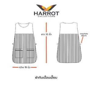 ผ้ากันเปื้อนทรงเอี๊ยมแบบเต็มตัว ดีไซน์คลาสสิกผสานความเรียบหรูด้วยลายวินเทจตัดต่อผ้าสีดำ พร้อมดีเทลแต่งกุ๊นกระเป๋าดำช่วยเพิ่มความเรียบร้อยและดูมืออาชีพ เหมาะสำหรับพนักงานในแผนกครัว บริกร แม่บ้าน หรือพนักงานต้อนรับในร้านอาหาร คาเฟ่ และโรงแรมที่ต้องการภาพลักษณ์เรียบร้อยและมีเอกลักษณ์