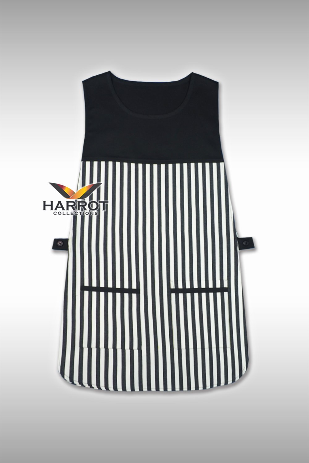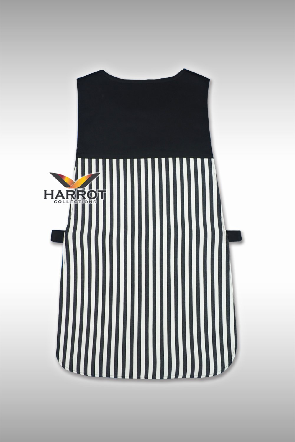 ผ้ากันเปื้อนทรงเอี๊ยมแบบเต็มตัว ดีไซน์คลาสสิกผสานความเรียบหรูด้วยลายวินเทจตัดต่อผ้าสีดำ พร้อมดีเทลแต่งกุ๊นกระเป๋าดำช่วยเพิ่มความเรียบร้อยและดูมืออาชีพ เหมาะสำหรับพนักงานในแผนกครัว บริกร แม่บ้าน หรือพนักงานต้อนรับในร้านอาหาร คาเฟ่ และโรงแรมที่ต้องการภาพลักษณ์เรียบร้อยและมีเอกลักษณ์