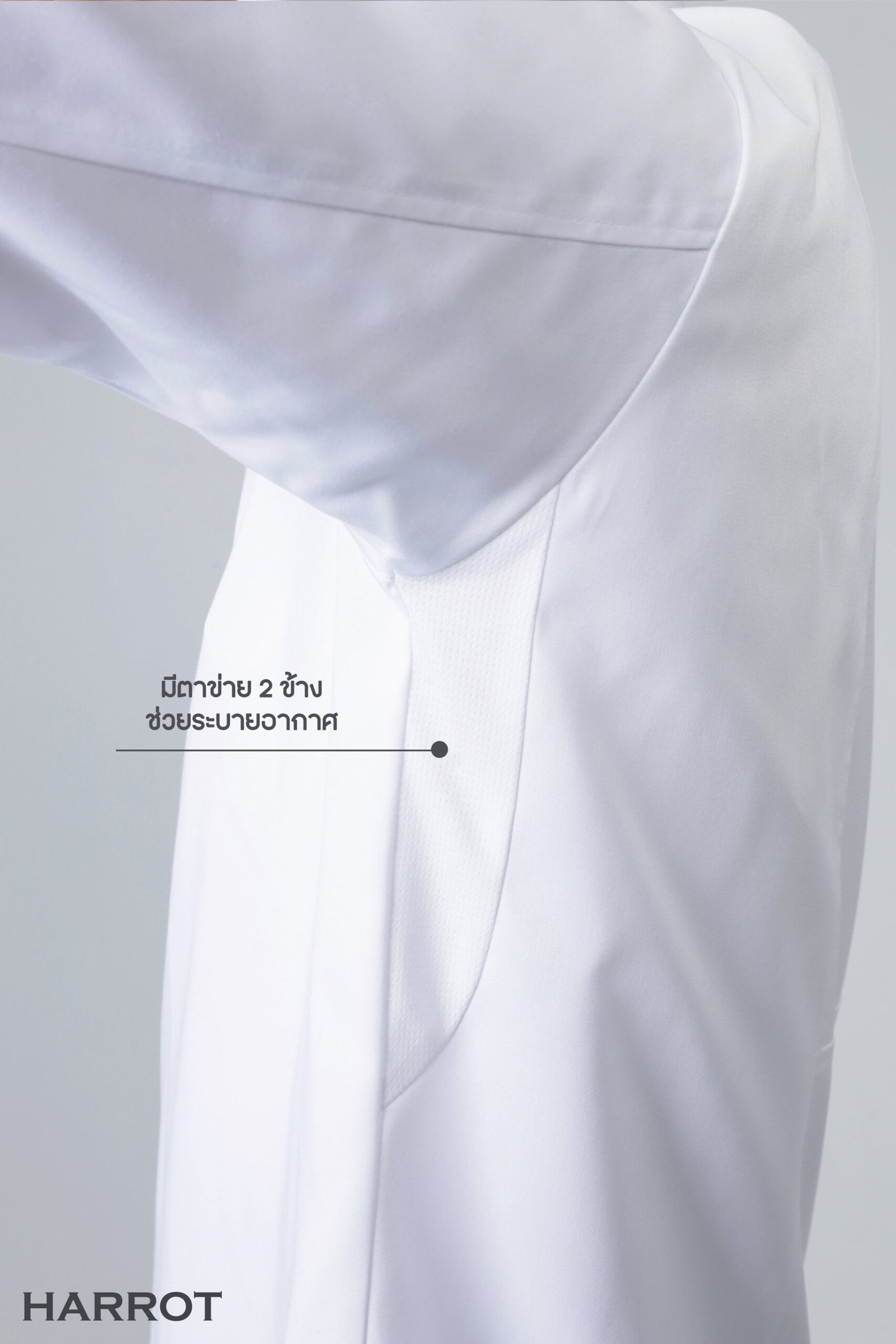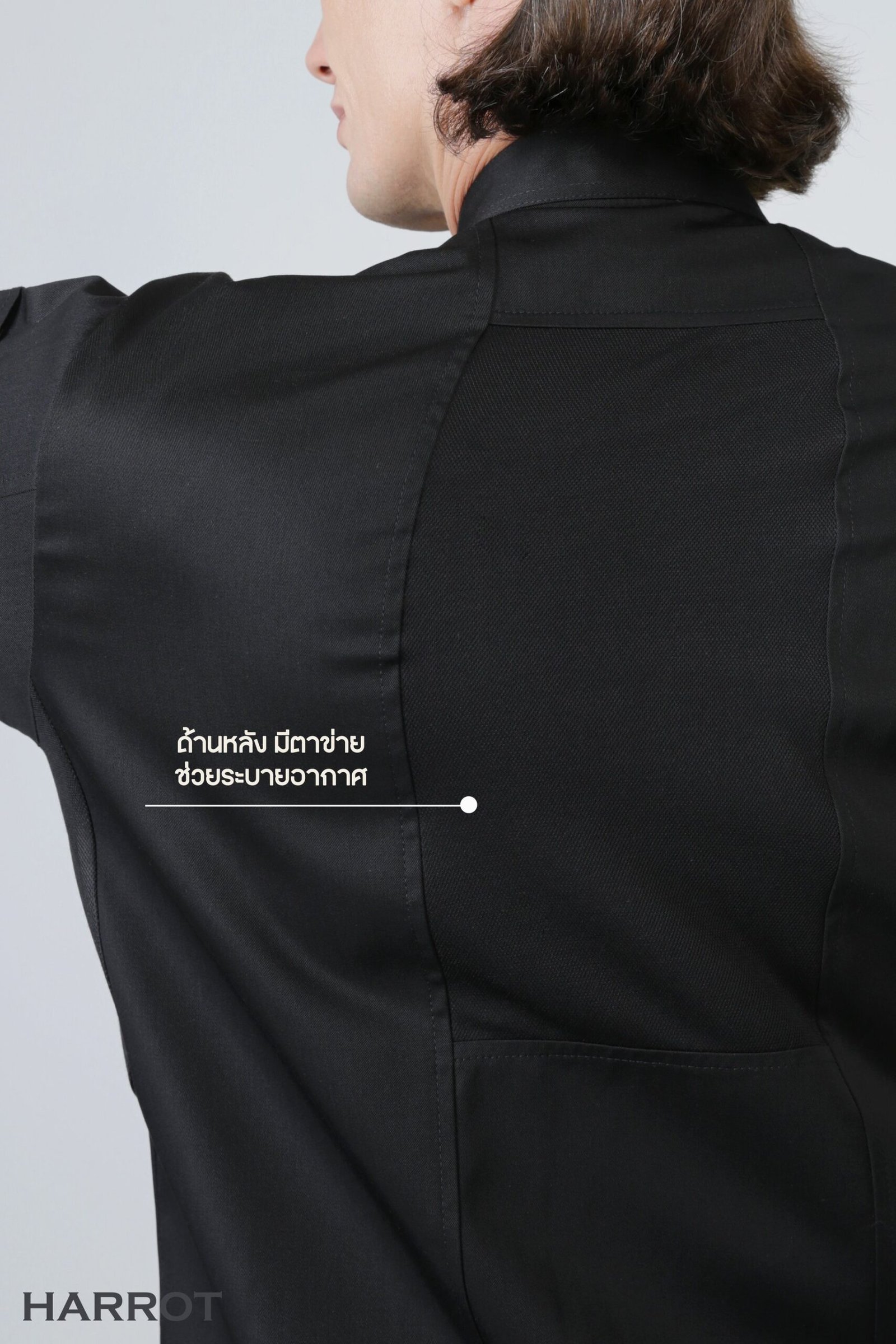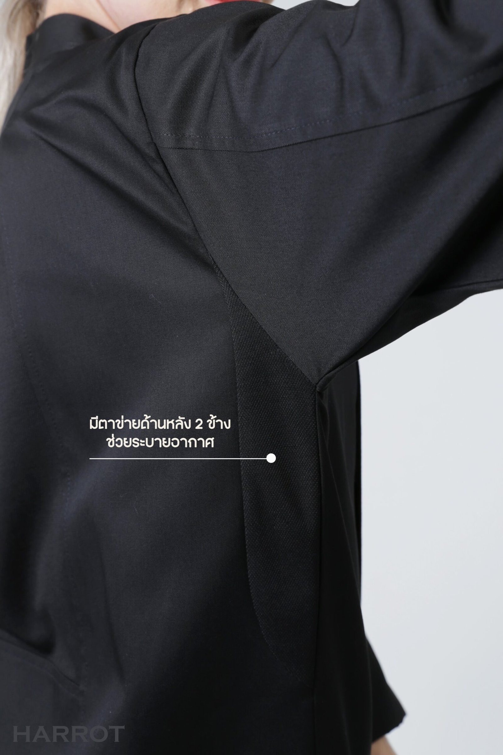 เสื้อเชฟรุ่นแอร์เฟลคซ์ จุดเด่นอยู่ที่ตาข่ายระบายอากาศ 3 จุด ตาข่ายบริเวณใต้รักแร้ทั้งซ้ายและขวา ตาข่ายด้านหลัง เพื่อตอบโจทย์การใช้งานจริงในห้องครัว ที่มีทั้งความร้อนและความอับชื้น เนื้อผ้ามีความหนาพอเหมาะ ไม่บาง ไม่ร้อนจนเกินไป ช่วยให้เชฟเคลื่อนไหวคล่องตัว พร้อมคงความสุภาพแบบมืออาชีพ