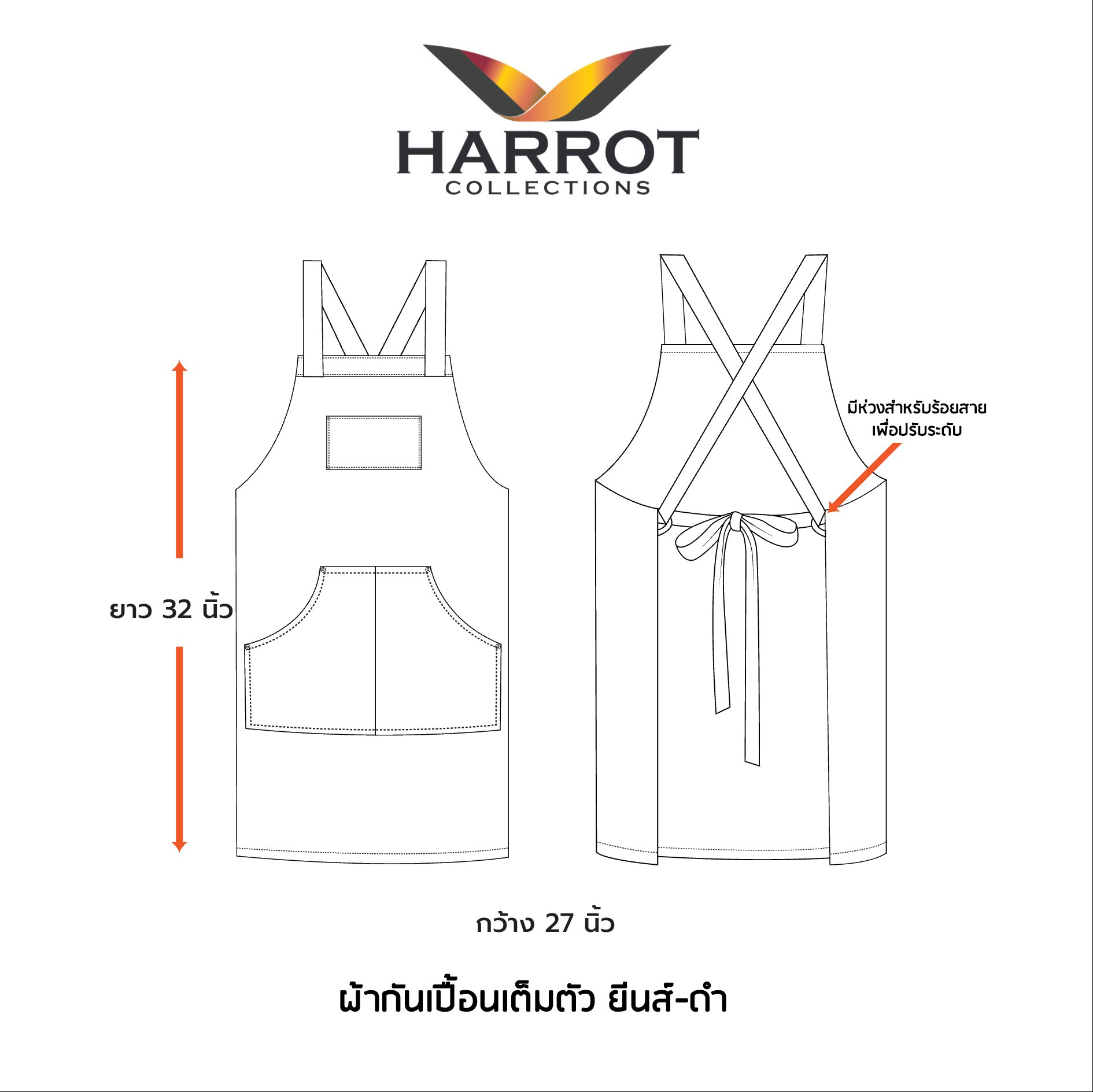 • ขนาดผ้ากันเปื้อน: กว้าง 26 นิ้ว x ยาว 30 นิ้ว ให้ความคล่องตัวในการทำงานโดยไม่รู้สึกเทอะทะ