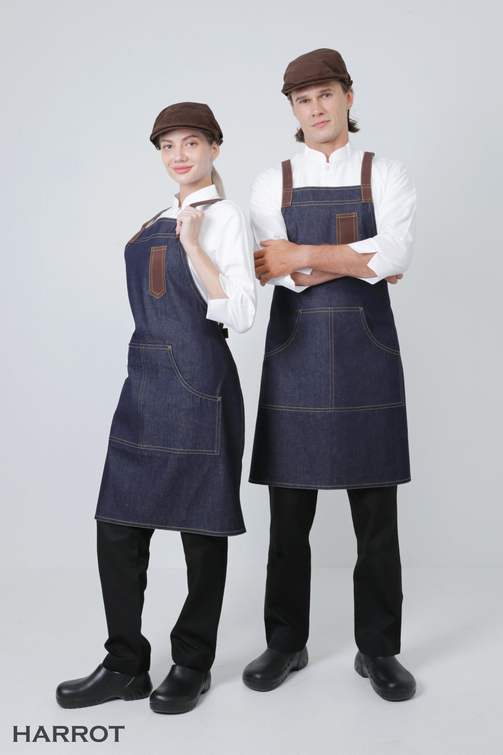 ผ้ากันเปื้อนเต็มตัวยีนส์ – ดีไซน์สายไขว้ ปรับระดับได้ เหมาะสำหรับงานบริการทุกสไตล์ ถูกออกแบบมาเพื่อผสมผสานความเท่แบบยีนส์เข้ากับความเป็นมืออาชีพ