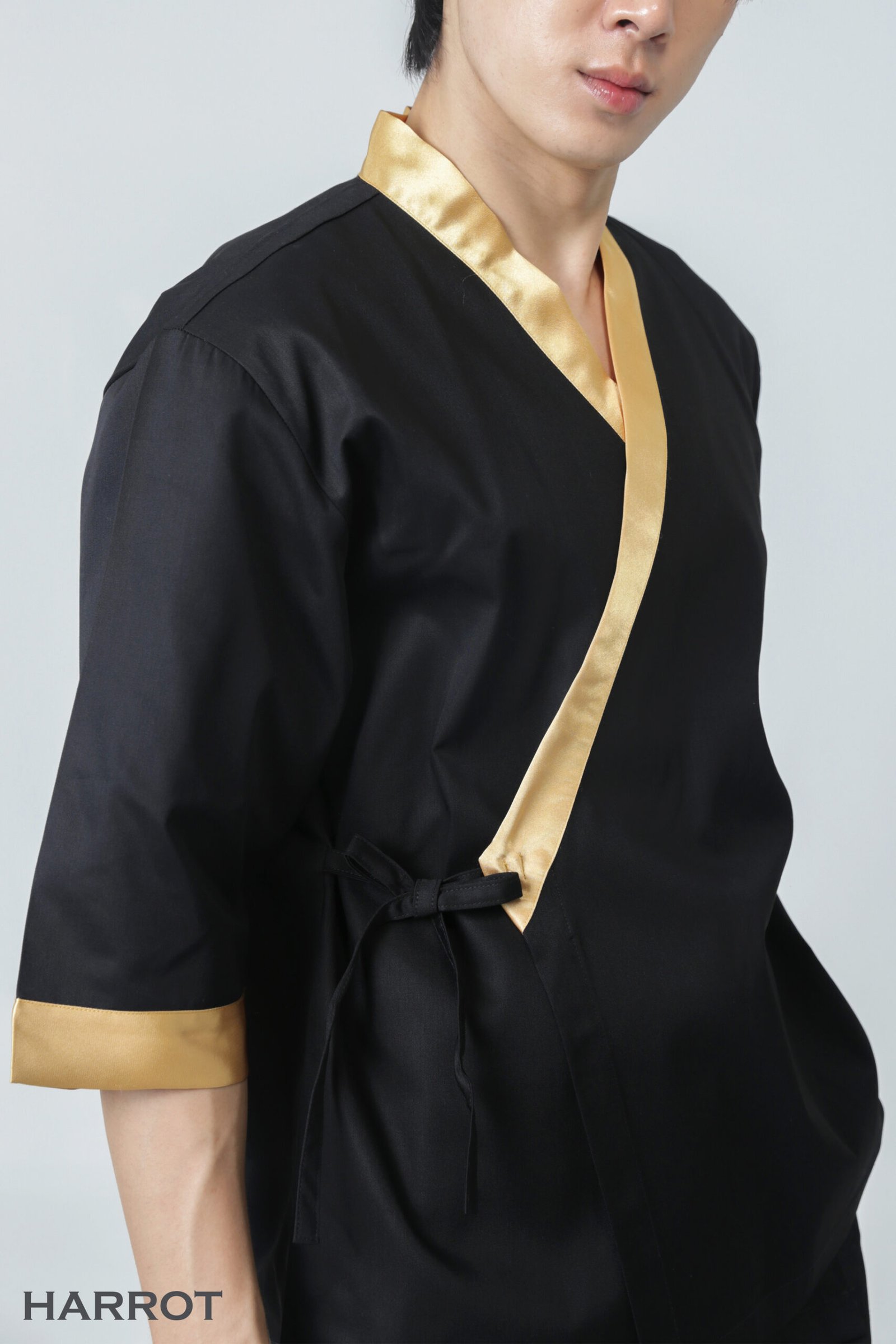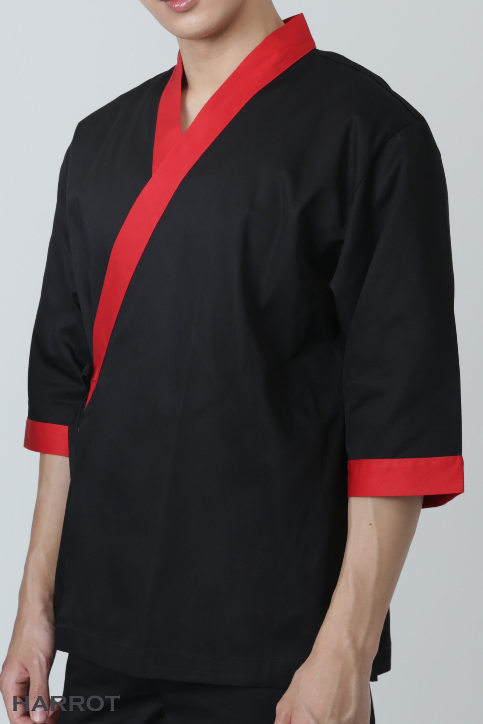 เสื้อเชฟญี่ปุ่นแต่งกุ๊น ออกแบบให้ดูเรียบง่ายแต่มากด้วยสไตล์ เน้นความคล่องตัวในการทำงาน พร้อมดีไซน์ที่ทันสมัย