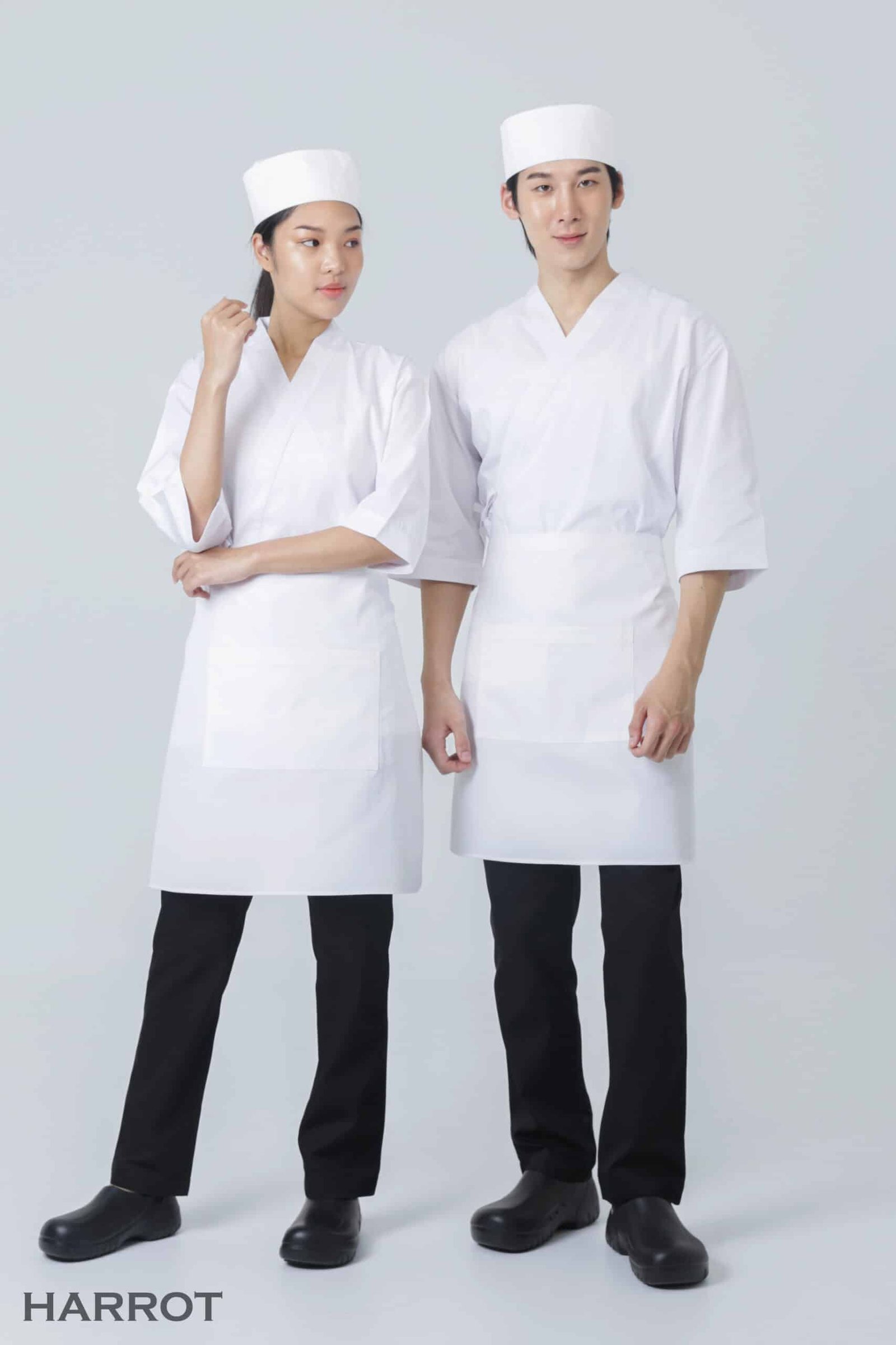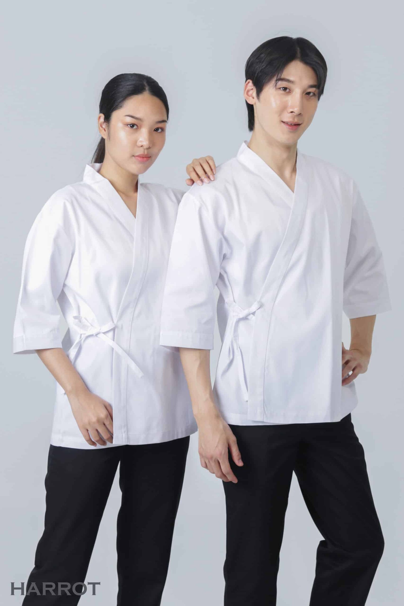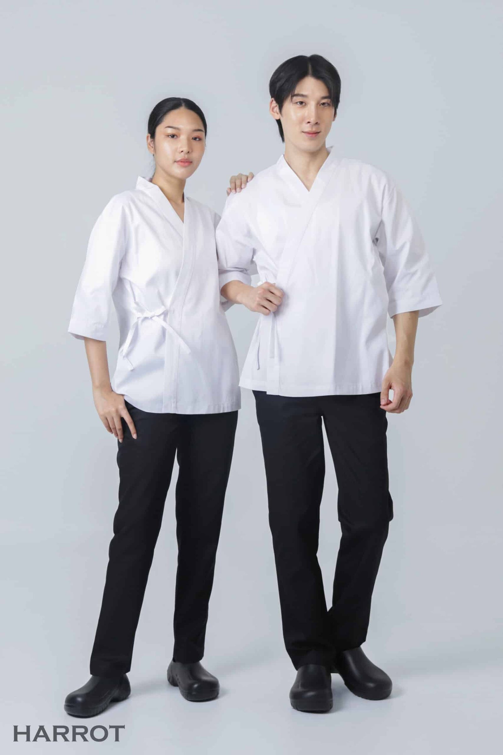 เสริมภาพลักษณ์ความเป็นมืออาชีพด้วยเสื้อเชฟดีไซน์สไตล์ญี่ปุ่น เรียบหรู สุภาพ และมีเอกลักษณ์เฉพาะตัว โดดเด่นด้วยคอป้ายแบบกิโมโน ใส่สบาย เคลื่อนไหวสะดวก