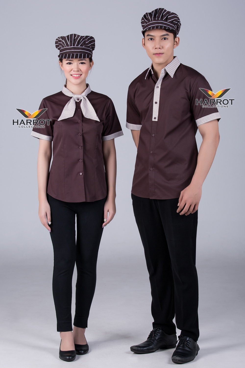 เสื้อพนักงานเสิร์ฟแขนสั้น แต่งลายสก๊อต ออกแบบมาเพื่อเสริมบุคลิกภาพที่ดูดี มีระเบียบเรียบร้อย สะท้อนถึงความใส่ใจขององค์กรในทุกรายละเอียดด้วยดีไซน์เรียบหรู