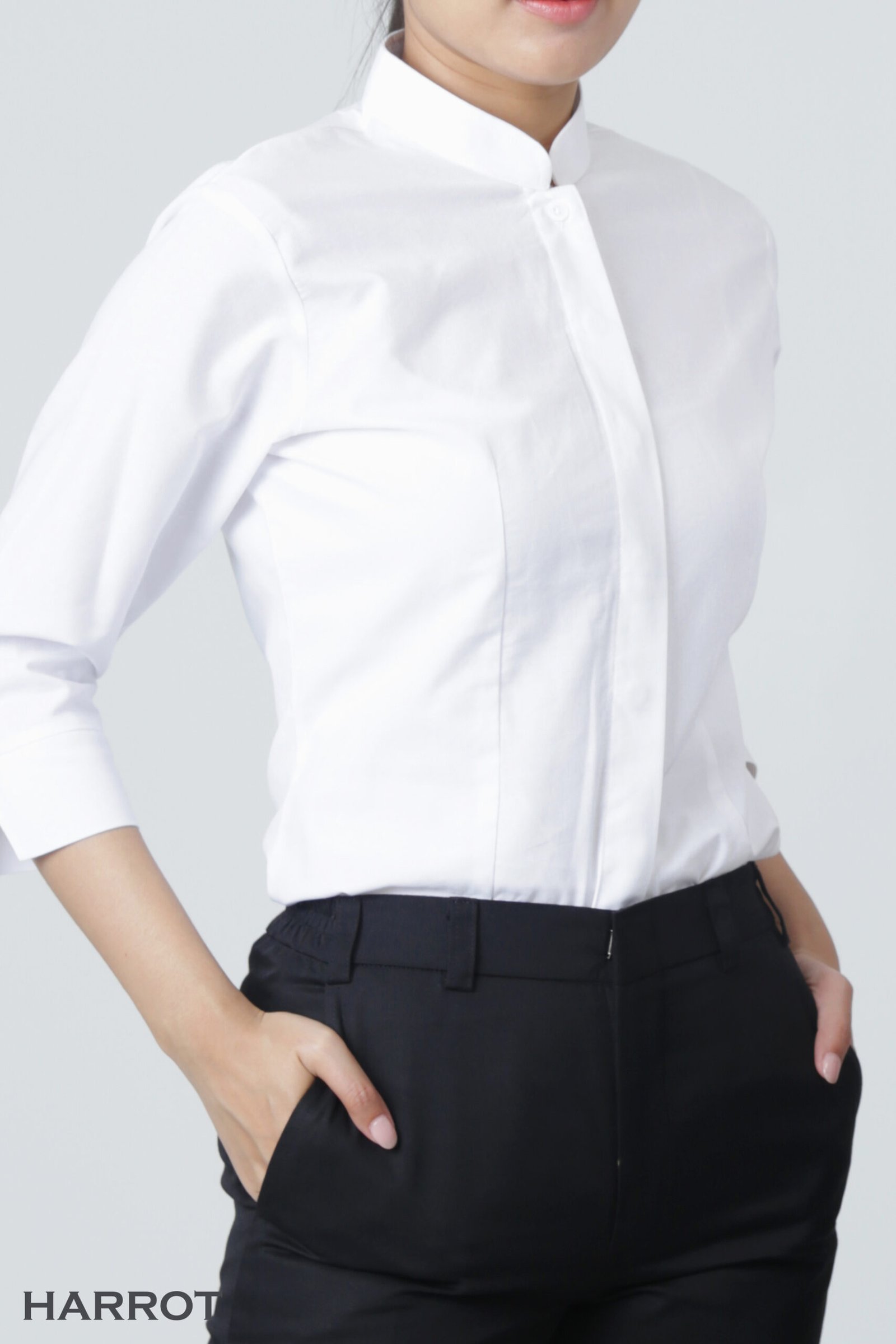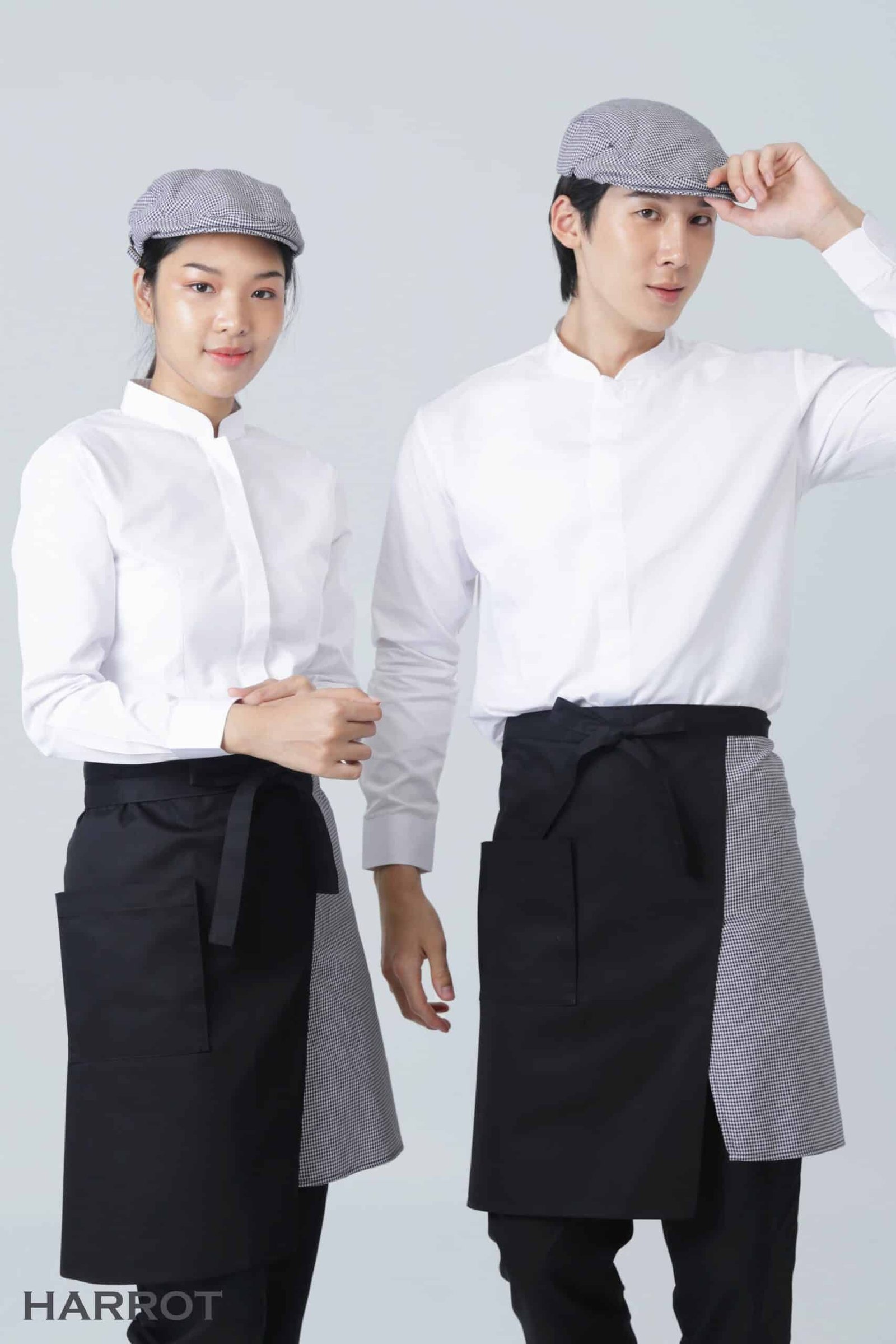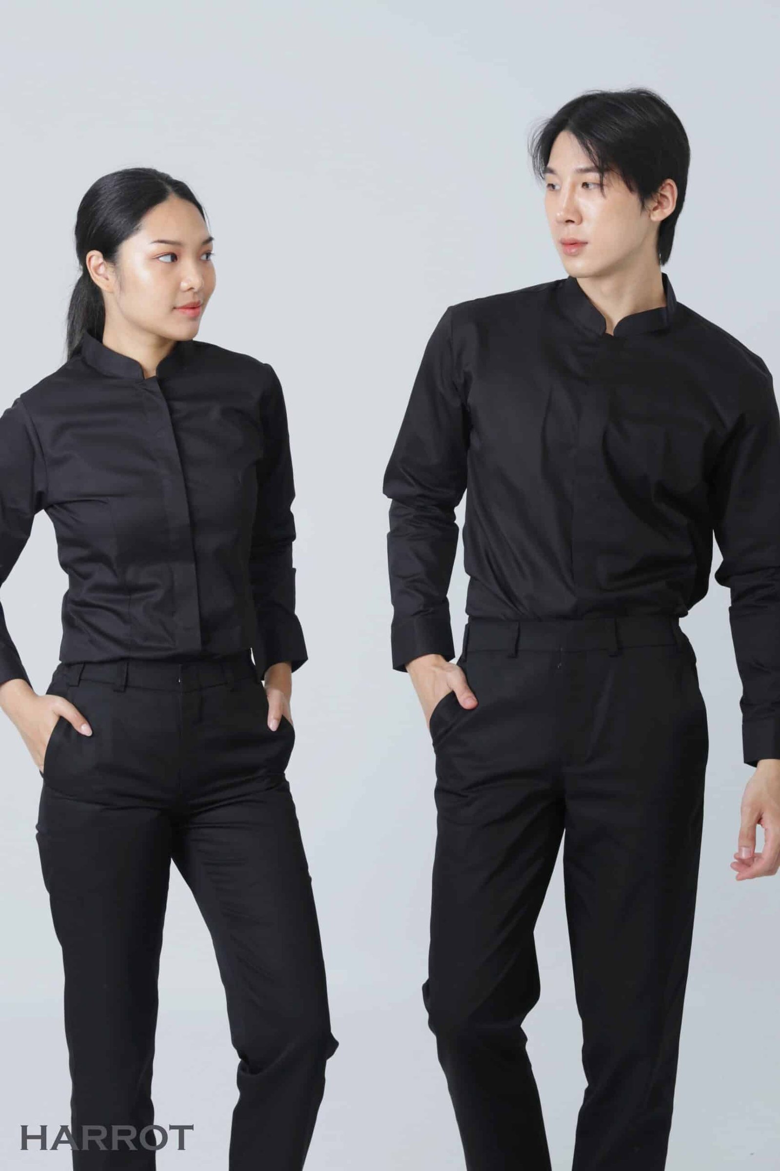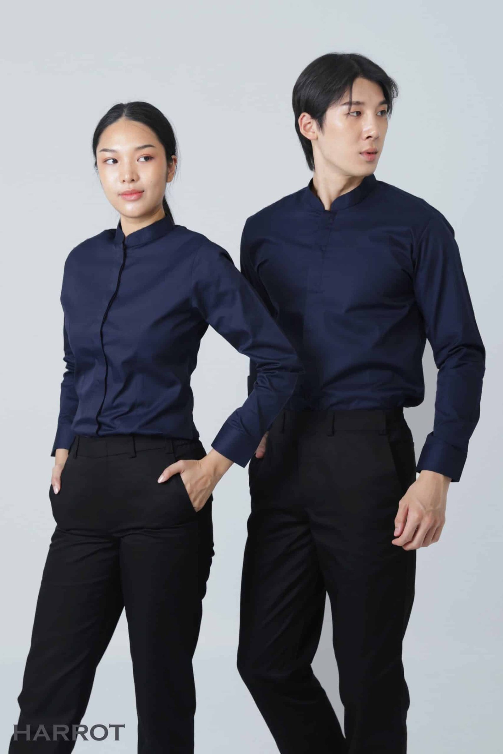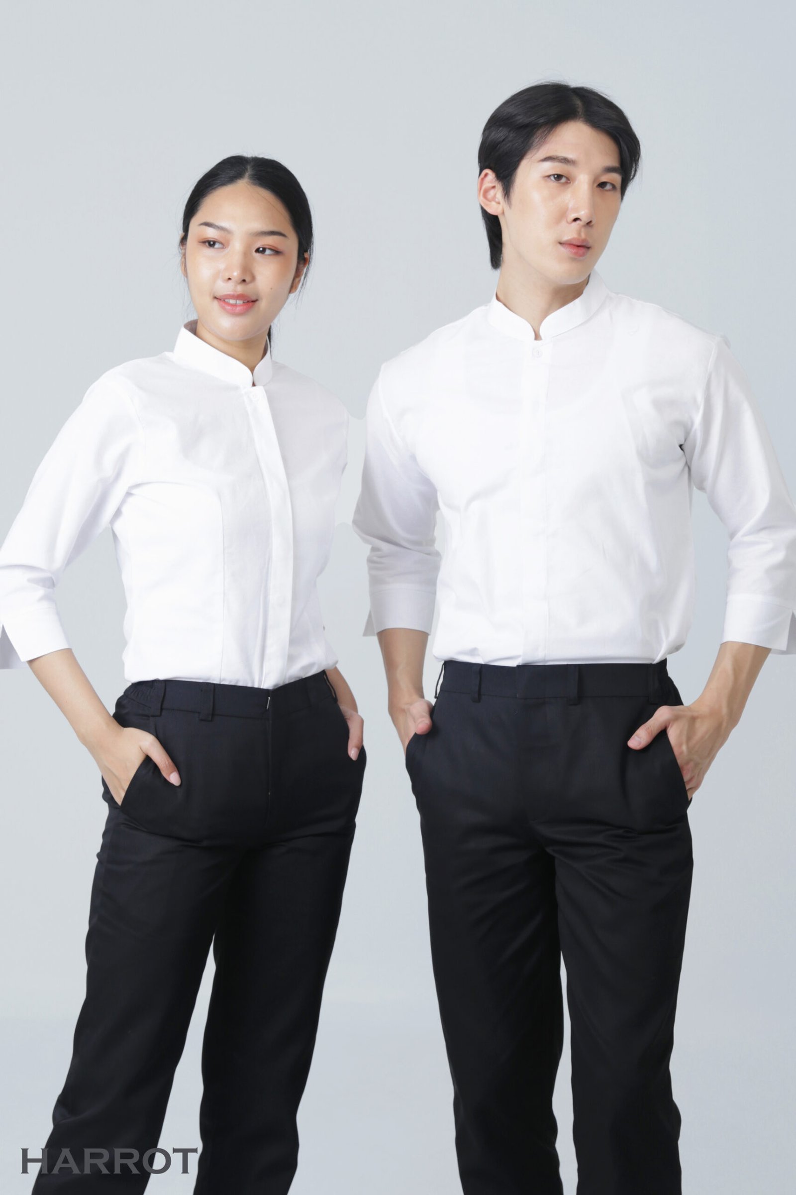 เสื้อพนักงานเสิร์ฟแขนยาว คอจีน ออกแบบมาเพื่อเสริมบุคลิกภาพที่ดูดี มีระเบียบเรียบร้อย สะท้อนถึงความใส่ใจขององค์กรในทุกรายละเอียดด้วยดีไซน์เรียบหรู